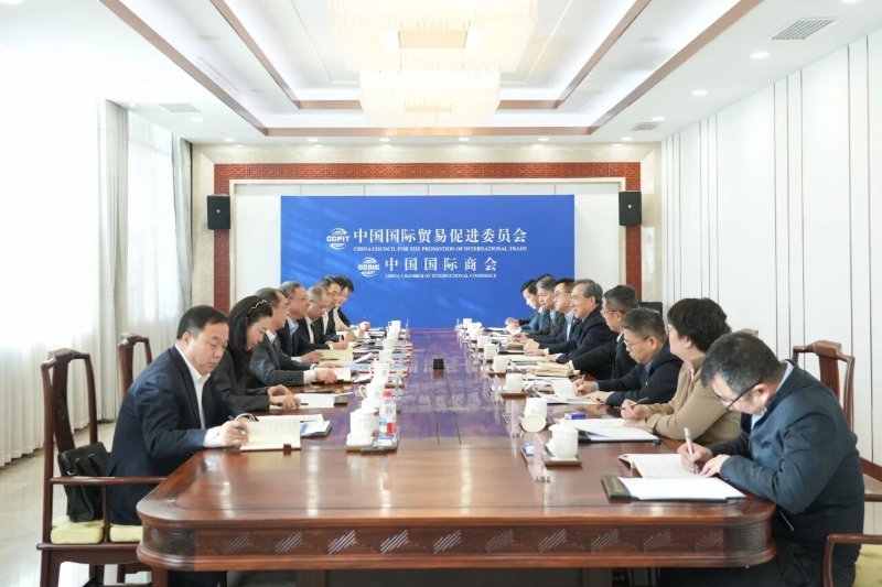 倪真與中國貿(mào)促會黨組書記、會長任鴻斌會談
